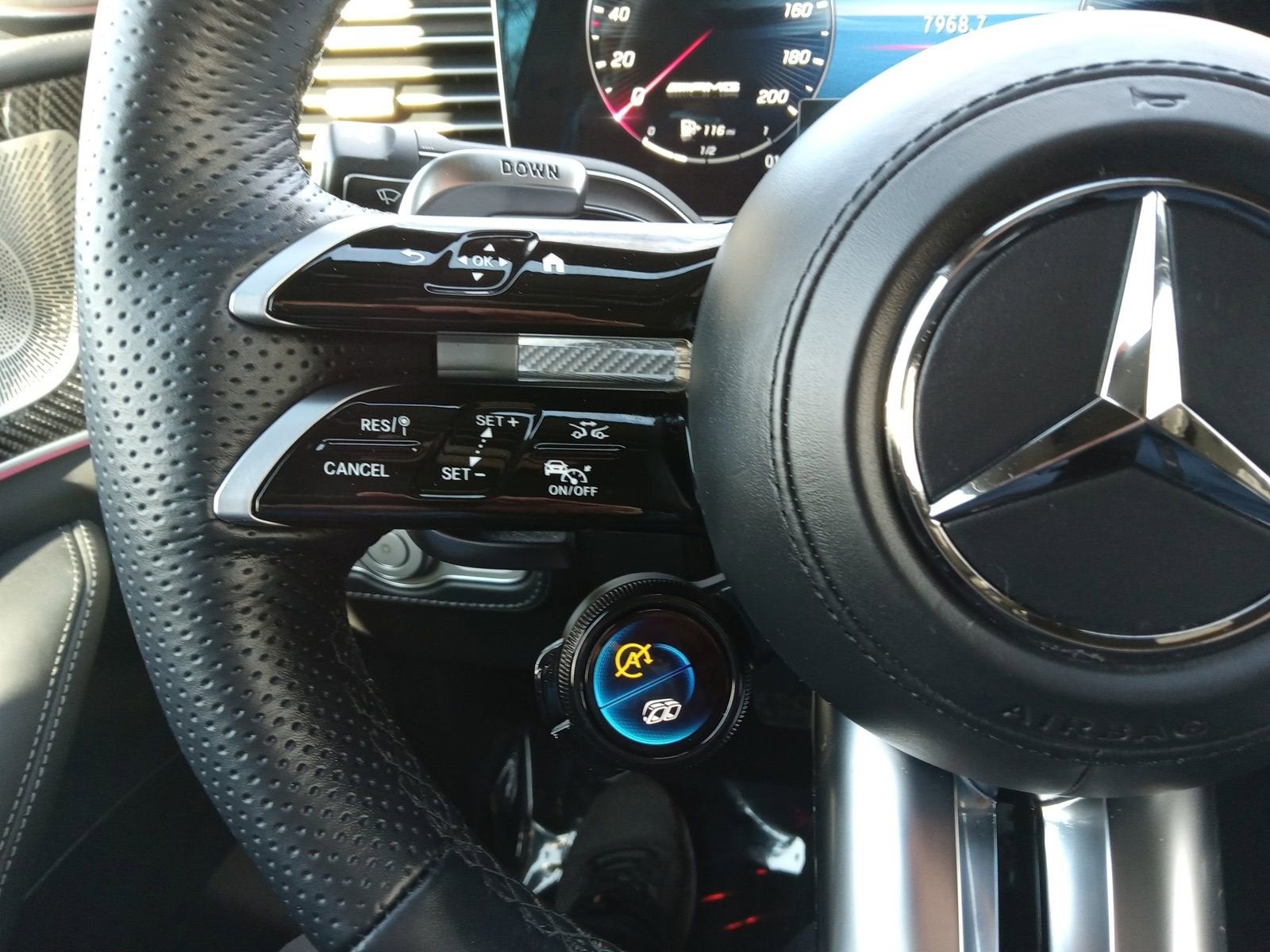 Like New Former Lease! Incredibly equipped 4.0L V8, 6-passenger..Panorama sunroof, temperature controlled cup holders, inductive wireless charging, Warmth & Comfort Pkg with heated arm rests, AMG Night Pkg, 22 AMG multi spoke matte black wheels, AMG Carbon Fiber trim, Burmester high end 3D surround sound, red brake calipers, microfiber headliner, power rear side window sunshades, surround view camera, fingerprint scanner, Apple CarPlay, Android auto, AMG heated and ventilated Black Exclusive nappa leather with diamond stitch multi contour seats with massage, 12.3 center display, adaptive damping system, electric folding third row, heated steering wheel, Active Distance Assist with active steering assist, Magic vision control, soft close doors, power liftgate, AMG body styling, dual exhaust pipes and more. Clean CARFAX. Call to confirm availability. Easy financing available!